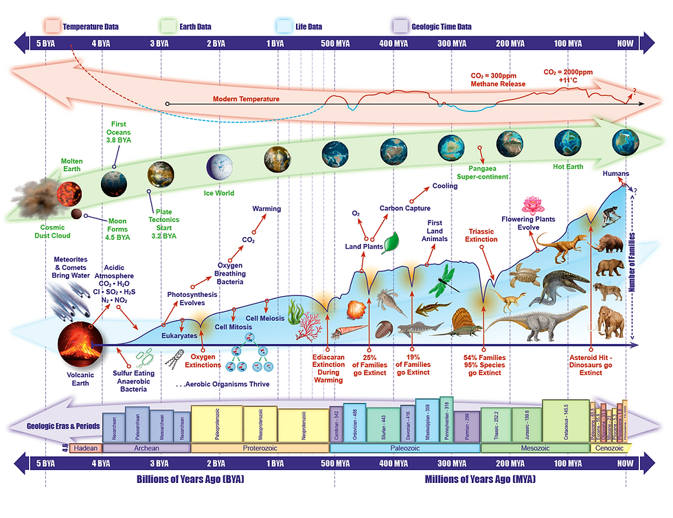 I thought to myself, you should do a summation of this story all on one page. I thought it would be an interesting challenge and embarked on many weeks of research to come up with the data and multiple perspectives on the three major themes over Earth's lifespan so far. It was fun, interesting and will springboard into some more blog posts later on.
